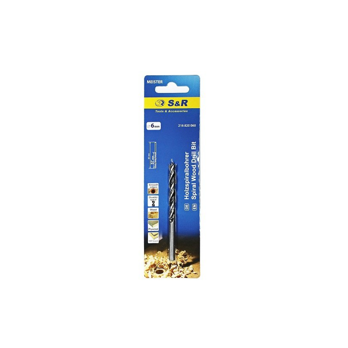 Сверло по дереву Meister спиральное 6 х 92 мм S&R (216820060)