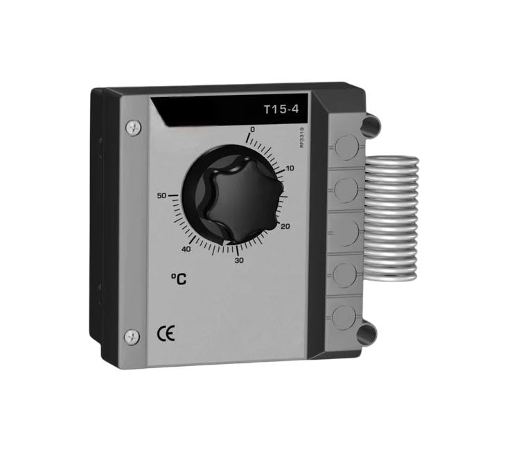 Термостат одинарный механический T15-4 HOTRACO (HO13000900) T15-4 Термостат для включения и выключения вентиляторов, нагревателей или сигнализации при заданной температуре и позволяет, в сочетании с трансформатором, управлять вентиляторами в зависимости от температурыПреимущества и гарантия