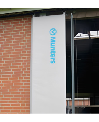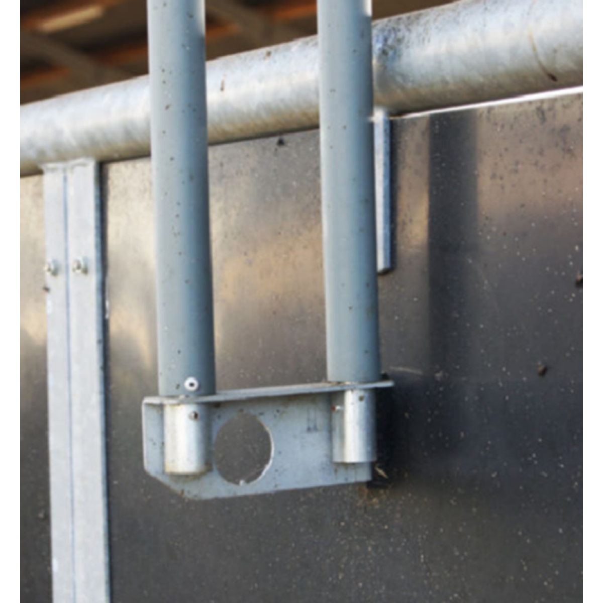 Для обеспечения безопасности при сильном ветре установлены специально разработанные ветрозащитные трубы на расстоянии 2 метров друг от друга, на высоте не более 3,5 метров и на расстоянии не более 1,5 метров (рекомендуемое расстояние варьируется в зависимости от высоты проёма). Ветрозащитные трубы устанавливаются снаружи и внутри шторы и также служат направляющей для шторы. Ветрозащитные трубы легко снимаются для обеспечения доступа транспортных средств в конюшню. Материал: оцинкованная сталь с пластиковым покрытием.Преимущества и гарантия