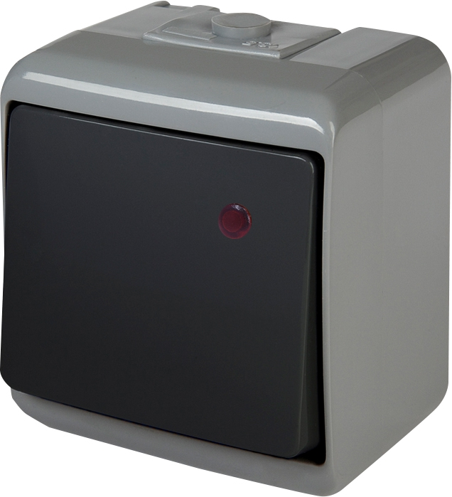 Выключатель 1-клавишный с подсветкой ETI VHE-1L-SRG (серо-графит., IP54) (004668102)