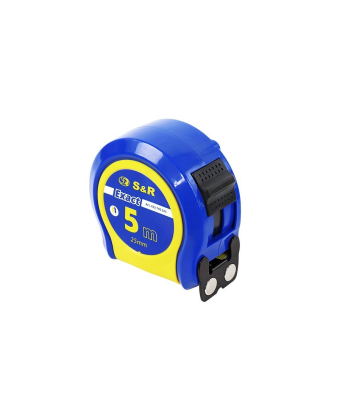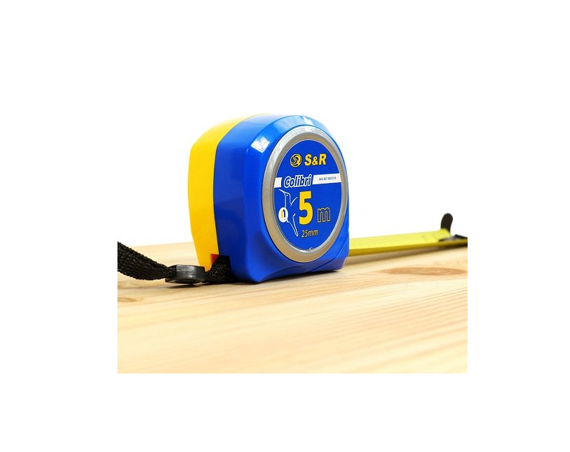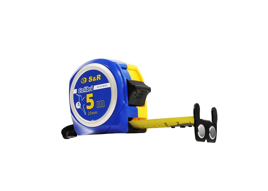 S & R Colibri 5 м - ручна рулетка для зняття замірів на будівельному об'єкті, в ремонтних цілях, для виробництва. Вимірювальна стрічка з нейлоновим покриттям, яке захищає стрічку від стирання для довгого терміну служби. Якісний механізм скручування стрічки забезпечує точну роботу без заломів стрічки. Широка стрічка забезпечує хорошу видимість позначень, а двостороння розмітка для зняття замірів під будь-яким кутом. Стрічка обладнана магнітним двостороннім зацепом, який надійно кріпиться до металевих поверхонь, що спрощує роботу і збільшує точність вимірювань. Компактний корпус рулетки забезпечує комфортну роботу з інструментом, і не займає багато місця в інструментальному валізі.Переваги та гарантія
