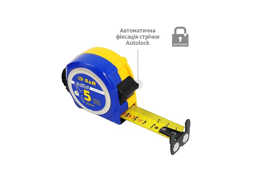 Запитання Рулетка 5 м x 25 мм Colibri з магнiтом S&R (421505019)