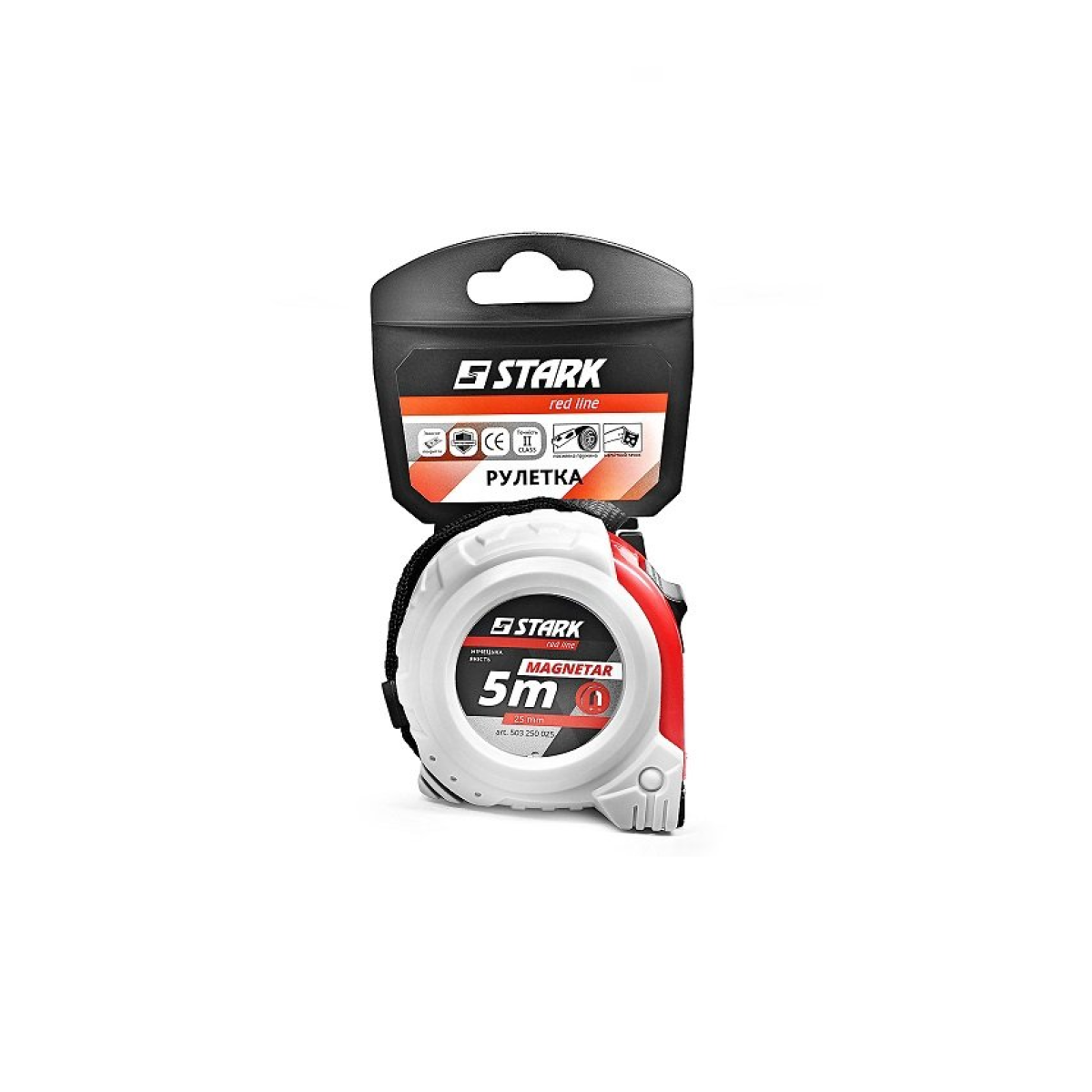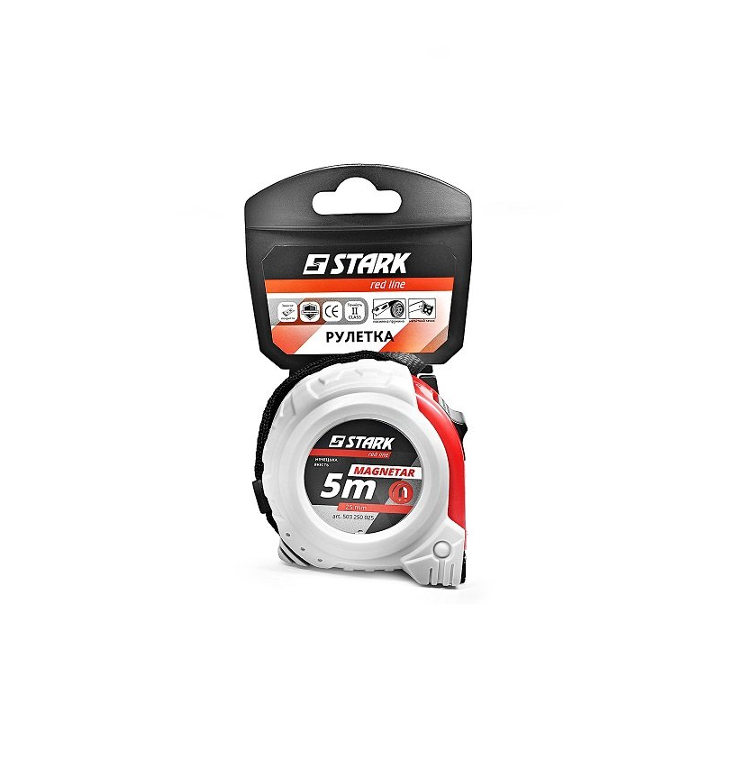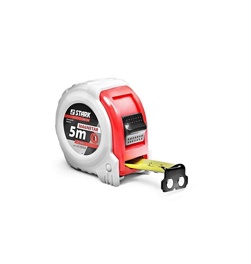 Stark Magnetar 5x25 - ручна рулетка для зняття замірів для ремонту, монтажу, виробництва. Корпус рулетки виготовлений з міцного матеріалу з прогумованими вставками, що забезпечує надійне захоплення без ковзання. Рулетка серії Magnetar володіє магнітним гачком, завдяки якому не тільки легко зберігати і переносити інструмент, але і надійно закріплювати на металевих поверхнях для зручності в процесі вимірювання. Якісна стрічка з посиленим захисним покриттям - міцна в висунутому стані і еластична при скручуванні, що не витираються розмітки. Стрічка регулюється за допомогою надійної пружини, яка дасть можливість рулетці служити Вам довгі роки. Має другий клас точності, що доводить високий рівень інструменту.Переваги та гарантія