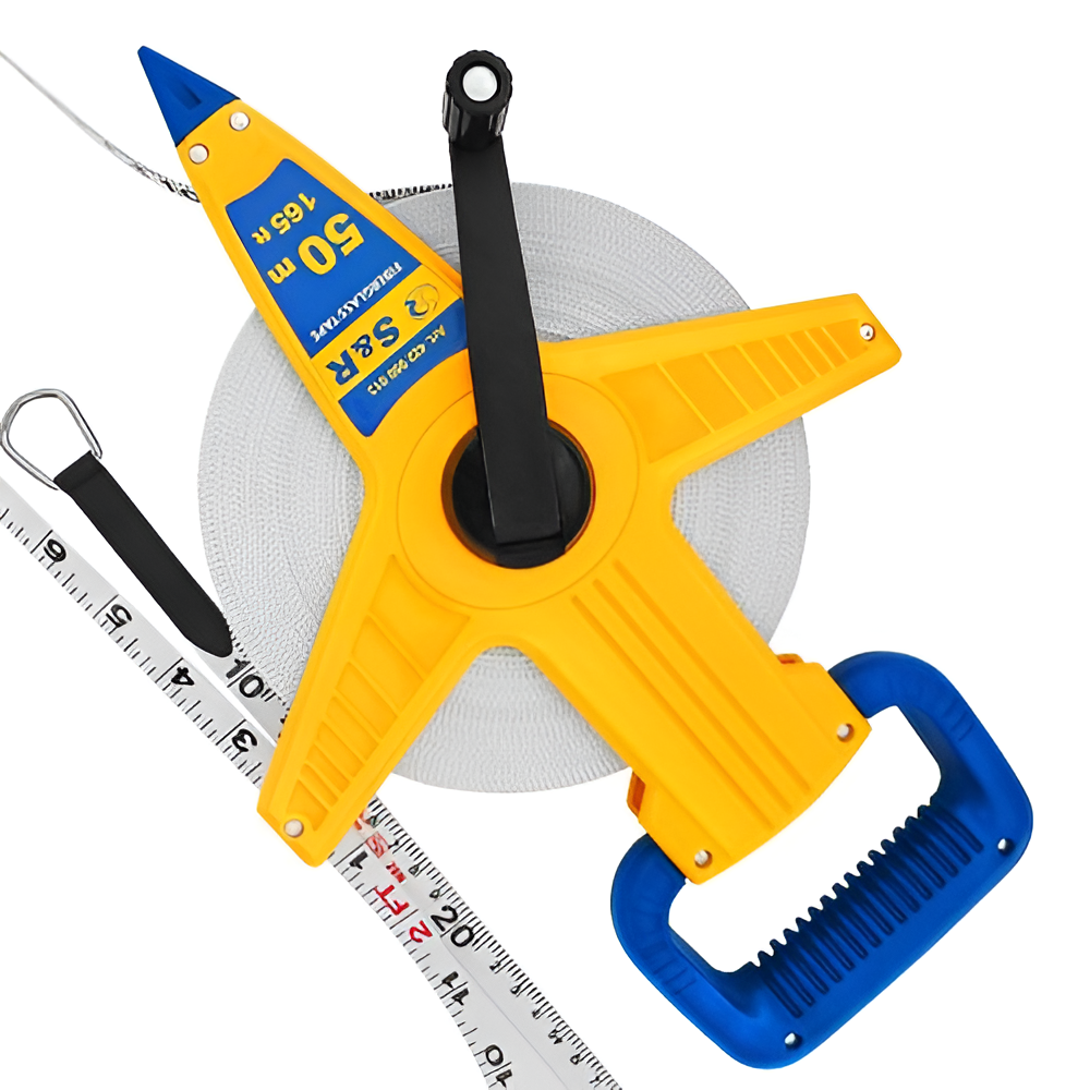 S & R 50м х 13 мм - 50 метрова рулетка зі стрічкою для вимірювання великих відстаней, яка використовується в будівельних, садово-ландшафтних, геодезичних, дорожніх роботах. Вимірювальна стрічка виготовлена з фибергласса, яка має довгий термін служби. Завдяки гнучкості стрічки легко можна заміряти кути, опуклі або увігнуті поверхні та ін. Розмітка нанесена по обидва боки: з одного см, з іншого фути. На кінці стрічка обладнана металевим зацепом, який кріпитися для зручності вимірювань. Корпус виготовлений з якісного ABC пластику з високим терміном служби. На корпусі передбачена ручка для швидкого скручування стрічки. А також рукоятка для зручного захоплення інструменту, яка допомагає при розкручуванні стрічки.Переваги та гарантія
