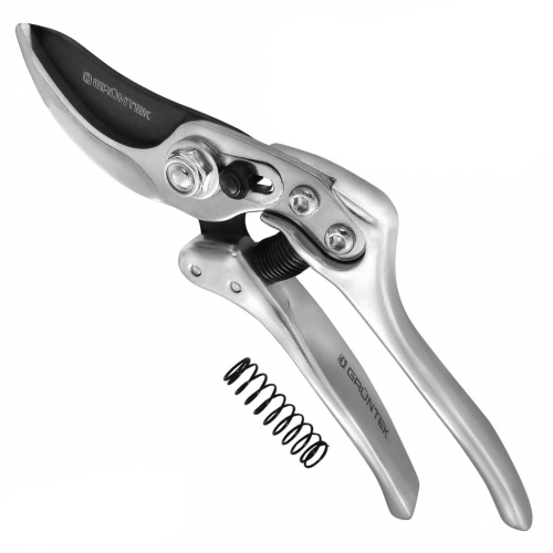 Секатор Gruntek Silber-Schnitt для акуратної обрізки зелених гілок, кущів, лози, молодих пагонів і квітів. Міцний сталевий секатор дає можливість обробляти дерева і кущі не замислюючись про силу натискання на рукоятки. А надійний пружинний механізм полегшує завдання зі зрізання гілок товщиною до 18 мм. Гострі леза із сталі SK5 створюють чіткий зріз, що не заламуючи гілки.Переваги та гарантія