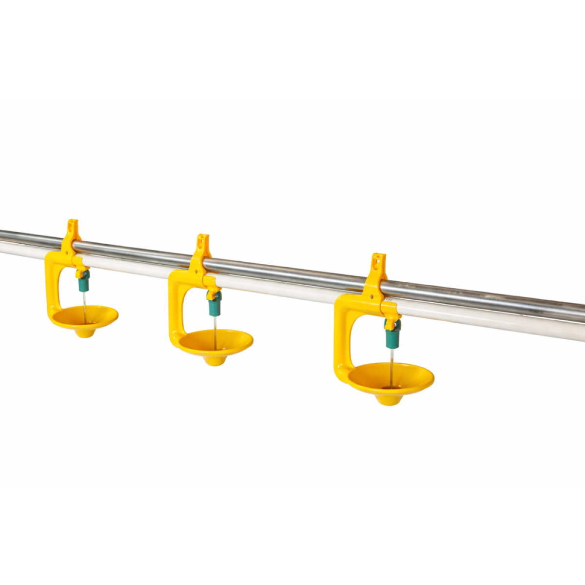 Секція напування довжиною 3,05 метра з напувалками Big Tom Turkey Drinker від Val-Co — це професійна лінія, спеціально розроблена для важкої індички. Головною технічною перевагою цієї системи є поєднання ніпелів з високою пропускною здатністю та масивних чаш-резервуарів, що задовольняють фізіологічні потреби індиків на всіх етапах росту — від підрощеного молодняка до важких самців (до 20+ кг). Комплект включає дві масивні чаші Big Tom. Вони спроектовані так, щоб забезпечити птиці звичний доступ до "відкритої" води, одночасно використовуючи надійність ніпельної технології Val-Co. Технічні переваги: Підсилена рама: Секція оснащена оцинкованою трубою-кондуїтом (діаметром близько 30 мм), яка фіксується над лінією напування. Це технічно необхідно для запобігання прогину 3-метрової секції під вагою води та важких птахів, що спираються на лінію, зберігаючи ідеальну горизонтальність для коректної роботи клапанів. Сідлові адаптери : Два посилені сідла забезпечують жорстку фіксацію напувалок на трубі. Конструкція сідла виключає прокручування чаші, що критично важливо, коли велика птиця штовхає лінію під час активного напування. Комплект підвісу: До набору входять усі необхідні елементи для монтажу до основної лебідки. Це забезпечує легке регулювання висоти лінії відповідно до росту індиків, підтримуючи ідеальну ергономіку доступу до води. Секція поставляється з муфтою, оснащеною гумовим ущільнювальним кільцем Це технічне рішення дозволяє з'єднувати секції між собою без використання клею, забезпечуючи швидкий монтаж та абсолютну герметичність при термічному розширенні труб.Переваги та гарантія