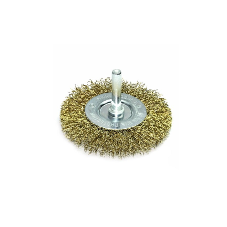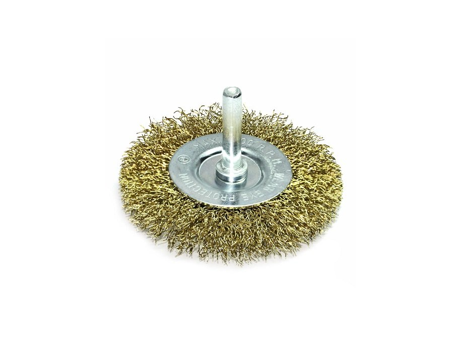 Щітка дискова, витий (рифлений) дріт 75мм хвост.6мм d0,3 об/хв 4500 латунований стальний дріт S&R (136631075)