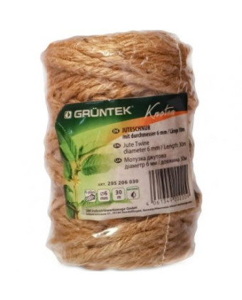 Шпагат джутовий GRUNTEK 4 мм х 50 м – повністю виготовлений із натурального волокна джуту, не фарбований. Застосування: підв'язування рослин, у якості мотузки для білизни, для виробів, декупажу і т.д. Особливості джутового шпагату Грюнтек 4 мм: Діаметр нитки – 4 мм. Загальна довжина – 50 м. Має високу міцність завдяки плетенню: 3 скручені разом нитки. Екологічно чистий продукт. Країна-виробник: Китай. Країна бренду: Німеччина.Переваги та гарантія