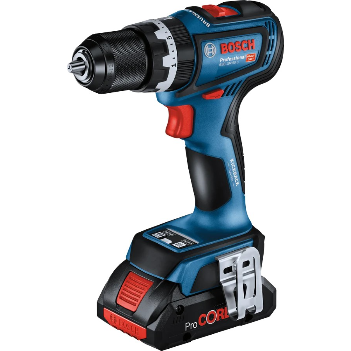 Bosch GSB 18V-90 C Professional — потужний ударний дриль-шуруповерт із безщітковим двигуном, що забезпечує 64 Нм крутного моменту та до 2100 об/хв. Компактна головка довжиною 175 мм забезпечує легке маневрування, а 13-мм металевий патрон гарантує надійну передачу моменту. Функція KickBack Control запобігає раптовим ривкам у разі заклинювання свердла, а прецизійна муфта знижує знос і шум, припиняючи прослизання при досягненні заданого моменту.Переваги та гарантія
