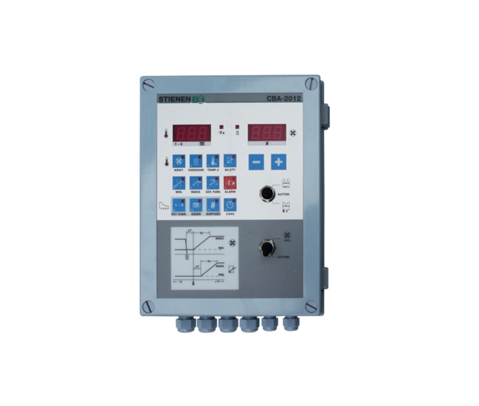 Виробник: Stienen Bedrijfselektronica bv, тип: CBA-2006, CBA-2012, країна: Нідерланди, комп'ютер управління вентиляцією CBA-2006 (Stienen, Нідерланди) з датчиком температури, контролери серії CBA-2000 регулюють клімат у приміщенні з однією зоною оснащені двома дисплеями для поточних показників температури та вентиляції, CBA-2006/2012 з додатковими виходами, 4 точки розриву на кривій зростання для точної програми кліматичного процесу. Технічні специфікації: напруга живлення – 230 В 50/60 Гц, споживання енергії CBA-2006 – 1400 ВА (максимум), розмір CBA-2006 – 300x230x120 мм, IP клас – 54, матеріал корпусу – ABS, умови експлуатації – від -5C до +40C. Управління вентиляцією: контроль із вимірювальним вентилятором, з повітряними відкидними стулками та центральною системою випуску, активація додаткового вентилятора. Управління нагріванням: обігрів приміщень, обігрів підлоги. Входи: датчик температури у приміщенні (N10B), другий датчик температури (N10B), зовнішній датчик (BV10B), вхід вимірювального вентилятора.Переваги та гарантія