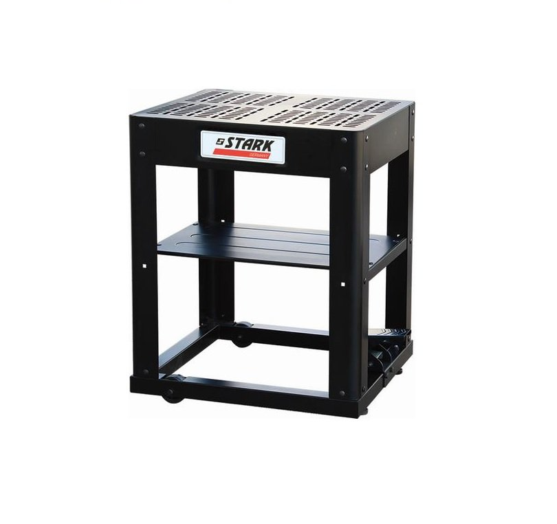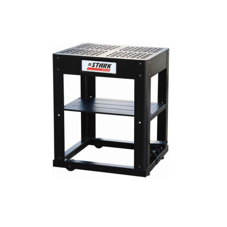 Стіл-верстак мультифункціональний STARK MFT-1 – спеціалізована підставка для роботи з настільними інструментами. Особливості мультифункціонального столу для роботи з настільними інструментами Штарк MFT-1: Має робочу поверхню 605х528 мм, завдяки чому може використовуватись із рядом інструментів. Висота столу – 745 мм. Витримує вагу до 100 кг. Робоча поверхня має багато отворів для фіксації інструменту. Наявність додаткової полички, де можна зберігати аксесуари, невеликий ручний інструмент та багато іншого. Просте переміщення столу для настільного інструменту завдяки наявності 2 коліс. Зручна фіксація столу за допомогою поворотного колеса з педаллю.Переваги та гарантія
