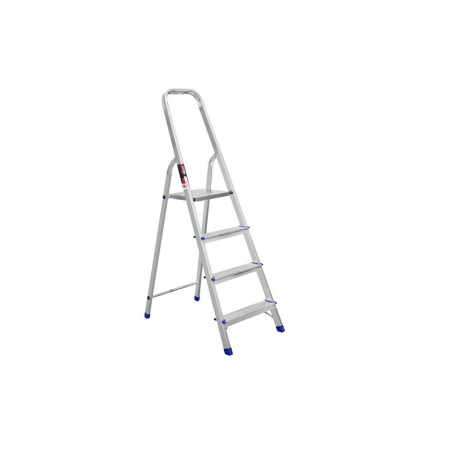 Stark SALW404 PRO - алюмінієва драбина висотою 82 см для побутового та професійного використання з максимальною робочою висотою до 2,9 м. Драбина виготовлена з міцного алюмінієвого профілю 40х20 мм завтовшки 1 мм, що забезпечує безпеку користувачеві і дозволяє витримувати до 150 кг ваги. Stark SALW404 складається з 4-х алюмінієвих сходинок, які зафіксовані заклепками. Ребриста поверхня сходинки запобігає ковзанню ноги для ще більшої безпеки. Верхня площадка виготовлена з міцної сталі, вона надійно фіксується в розкладеному стані. Зручно розміститися на драбини допомагає опора-рукоятка, за яку можна триматися, підіймаючись сходами. На ніжках передбачені пластикові накладки, які запобігають пошкодженню поверхні. Для надійної фіксації на ніжках накладки закріплені заклепками. Характеристики драбини Stark SALW404: Кількість сходинок - 4 шт .; Висота від підлоги до платформи - 82 см; Висота в складеному стані разом з опорою-рукояткою - 153 см; Робоча висота - 290 см; Ширина сходинки - 44 см. Stark SALW404 - компактна алюмінієва драбина дозволить швидко прибрати в будинку, помити вікна, дістати до верхньої полиці, виконати ремонтні роботи, зібрати урожай або обрізати дерева в саду та ін.Переваги та гарантія