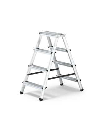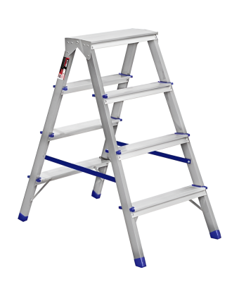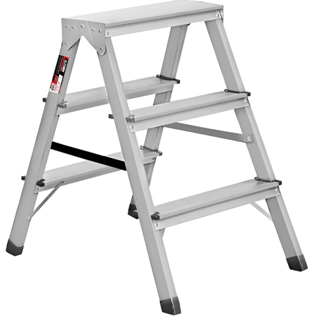 Stark SDHR403 PRO - алюмінієва двостороння стрем'янка висотою 65 см для побутового та професійного використання. Драбина виготовлена з міцного алюмінієвого профілю 40х20 мм завтовшки 1 мм, що забезпечує безпеку користувачеві і дозволяє витримувати до 150 кг ваги. Stark SDHR403 складається з 3-х алюмінієвих сходинок. Ребриста поверхня сходинки запобігає ковзанню ноги для ще більшої безпеки. На ніжках передбачені пластикові накладки, які запобігають пошкодженню підлоги. Для надійної фіксації на ніжках накладки закріплені заклепками. Характеристики стрем'янки Stark SDHR403.Stark SDHR403 - компактна алюмінієва стрем'янка в якій сходинки розташовані по обидва боки, дозволить швидко прибрати в будинку, помити вікна, виконати ремонтні, монтажні та ін. роботи.Переваги та гарантія