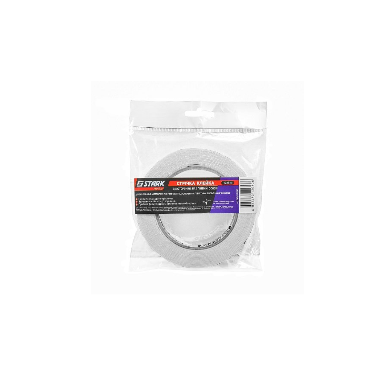 Характеристики Стрічка клейова двостороння вспіненна 12мм 5м, STARK (545012050)