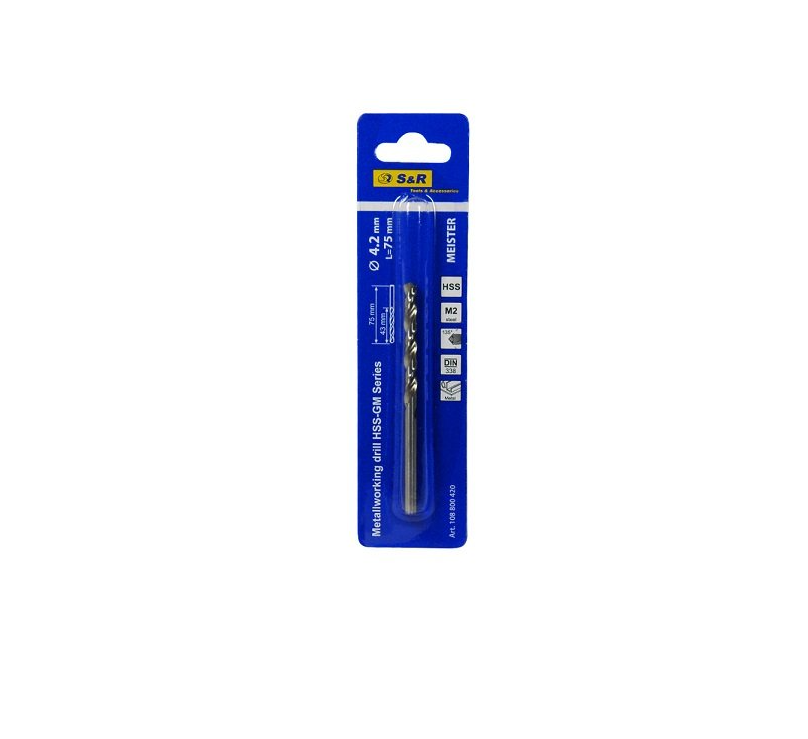 Характеристики Свердло по металу 4.2х43х75мм MEISTER HSS бл. S&R (108800420)