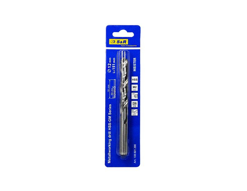 S & R Meister HSS 12.0x151 мм - свердло по металу для свердління отворів в металевих, залізних, пластикових, чавунних поверхнях, а також виробів з кольорового металу. Використовуються свердла з дрилями і свердлильними установками. Свердло по металу S & R Meister виготовлено зі швидкорізальної якісної сталі М2, яка стійка до зовнішніх пошкоджень з довгим терміном служби. Кут центру свердла заточений під 135 °, що дозволяє працювати з міцними, твердими матеріалами. Свердло виготовлено методом фрезерування, що забезпечує міцність заготівлі і гостроту канавок для чіткого і якісного свердління. Свердло по металу S & R Meister HSS 12.0x151 мм виготовлено за стандартами DIN338. Обладнаний циліндричним хвостовиком. Поставляється в блістеріПереваги та гарантія