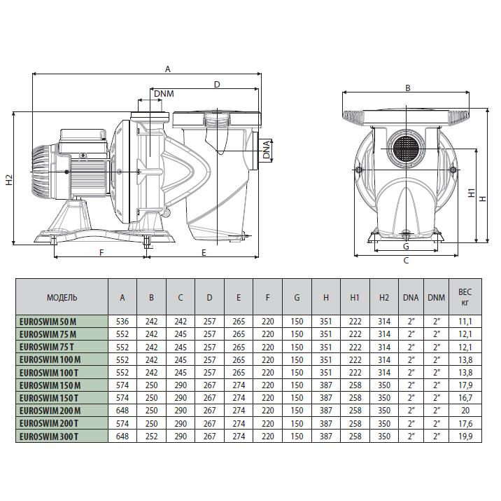 Центробіжний насос Euroswim 50M 230V 50Hz 4,2A. Довжина 541,00 мм Ширина 301,00 мм Вага 11306,000 кг Висота 311,00 мм 62-00-3605Переваги та гарантія