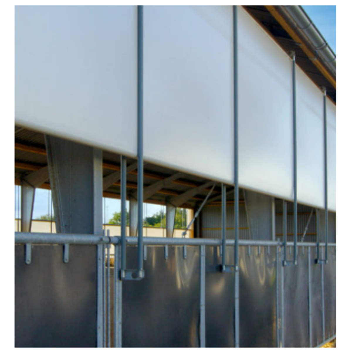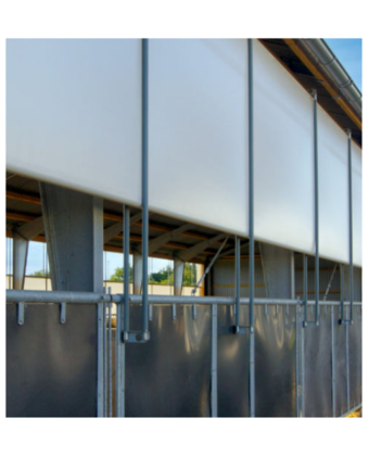 Виготовлено з міцного, стійкого до ультрафіолетового випромінювання поліестеру з ПВХ-покриттям та оптимальним світлопроникненням. Поверхня з антистатичними властивостями відштовхує бруд (солому, пісок, пил). Система MTC рухається через намотувальну трубу та стрічковий барабан, який керується вертикально лебідкою або мотор-редуктором. Доступне ручне керування. Завіса відкривається знизу вгору.Переваги та гарантія