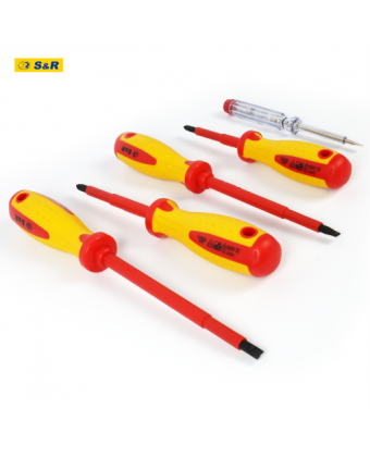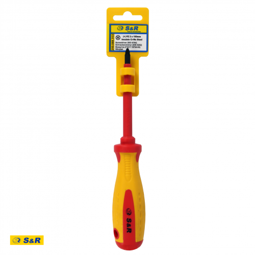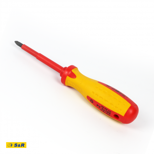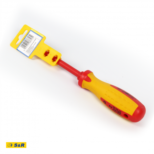 Викрутка S & R з хром-молібденової сталі для виконання електромонтажних робіт. Жало вливається в двокомпонентну діелектричну рукоятку у три етапи. Жало на 70% покрито діелектричним матеріалом.Переваги та гарантія