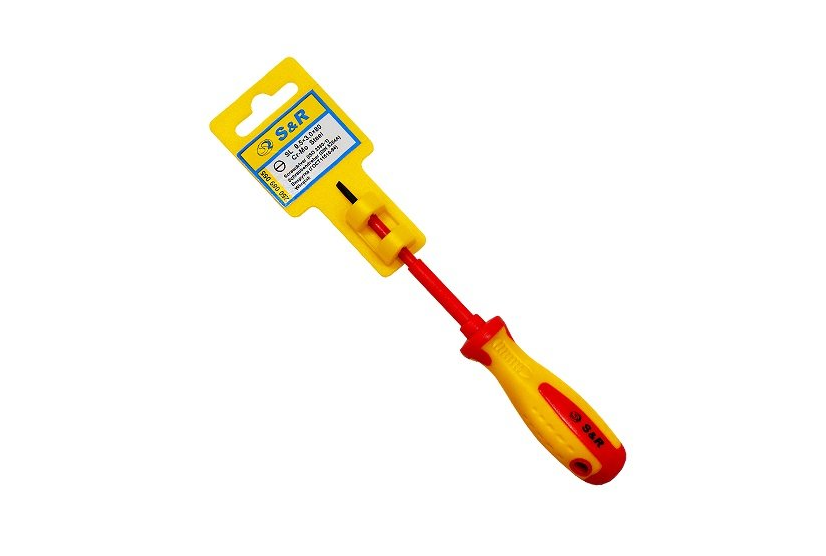 Викрутка S & R з хром-молібденової сталі для виконання електромонтажних робіт. Жало вливається в двокомпонентну діелектричну рукоятку у три етапи. Жало на 70% покрито діелектричним матеріалом.Переваги та гарантія