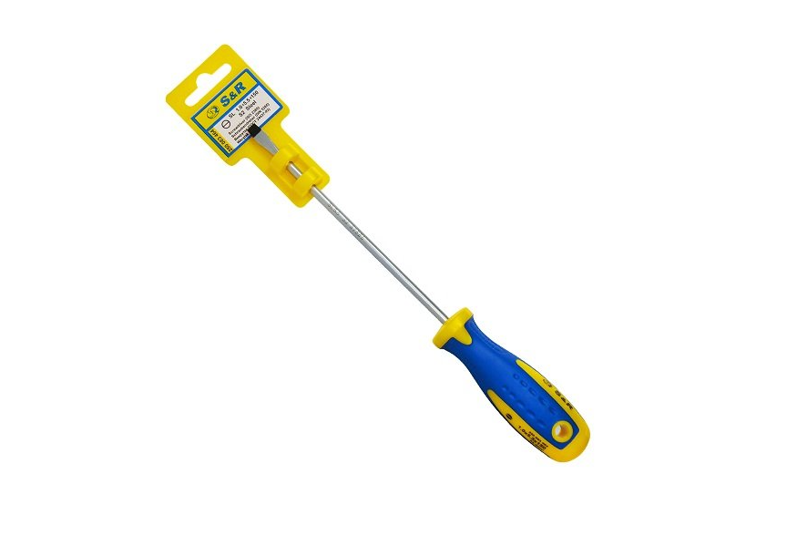 S & R SL5,5х1,0х150 мм-викрутка з прямим наконечником товщиною 1 мм і шириною 5,5 мм для відкручування і закручування кріпильних елементів. Виготовлена викрутка з кованої сталі S2 методом кування для стійкості і довгого терміну служби інструменту. Робоча частина пройшла термічну, а також індукційну загартування, що забезпечують міцність і стійкість до зовнішніх чинників. Обладнана викрутка ергономічної рукояткою для зручного захоплення рукою, а також гумове покриття запобігає ковзанню в руці в процесі роботи.Переваги та гарантія