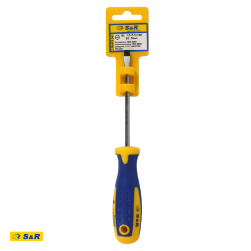 S & R SL5,5х1,0х125 мм-викрутка з прямим наконечником товщиною 1 мм і шириною 5,5 мм для відкручування і закручування кріпильних елементів. Виготовлена викрутка з кованої сталі S2 методом кування для стійкості і довгого терміну служби інструменту. Робоча частина пройшла термічну, а також індукційну загартування, що забезпечують міцність і стійкість до зовнішніх чинників. Обладнана викрутка ергономічної рукояткою для зручного захоплення рукою, а також гумове покриття запобігає ковзанню в руці в процесі роботи.Переваги та гарантія