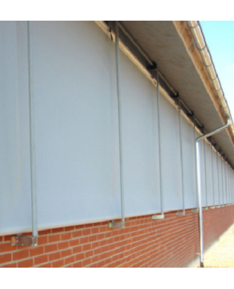 Для безпеки під час високої швидкості вітру спеціально розроблені вітрозахисні труби встановлюються на відстані 2 метрів одна від одної, з висоти максимум 3,5 метра на відстані максимум 1,5 метра (рекомендована відстань - відстань залежить від висоти отвору). Вітрозахисні труби встановлюються зовні та зсередини завіси та також виконують роль напрямних для завіси. Матеріал: оцинкована сталь з пластиковим покриттям.Переваги та гарантія