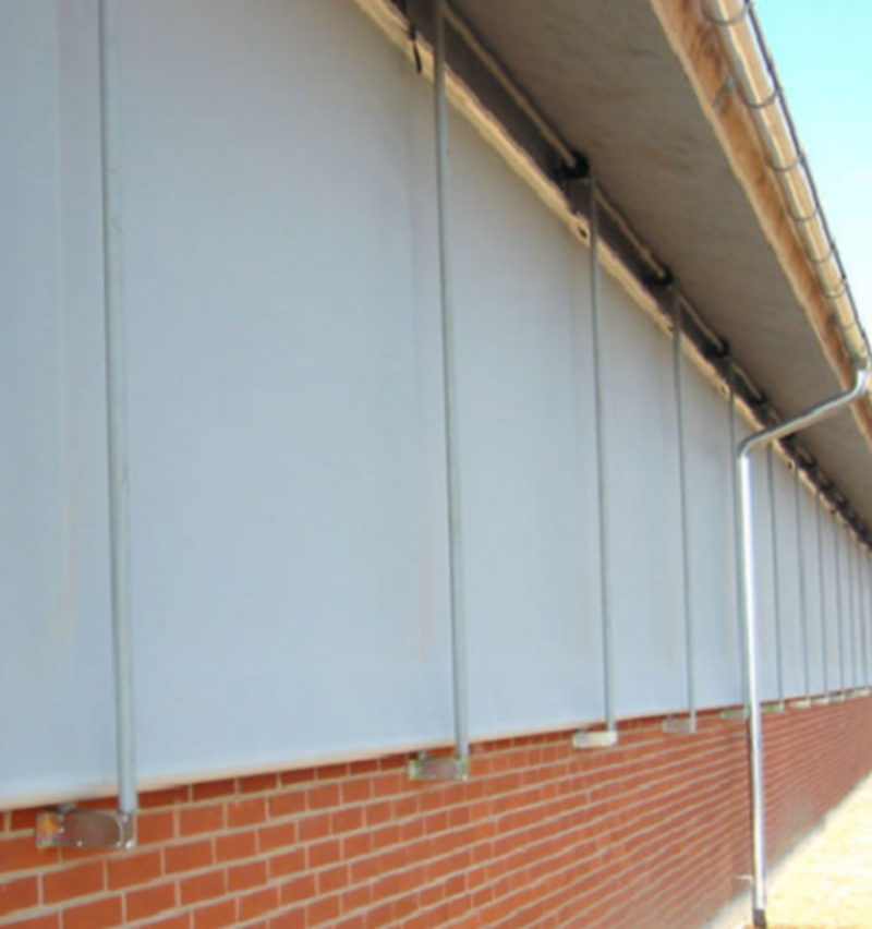 Для безпеки під час високої швидкості вітру спеціально розроблені вітрозахисні труби встановлюються на відстані 2 метрів одна від одної, з висоти максимум 3,5 метра на відстані максимум 1,5 метра (рекомендована відстань - відстань залежить від висоти отвору). Вітрозахисні труби встановлюються зовні та зсередини завіси та також виконують роль напрямних для завіси. Матеріал: оцинкована сталь з пластиковим покриттям.Переваги та гарантія