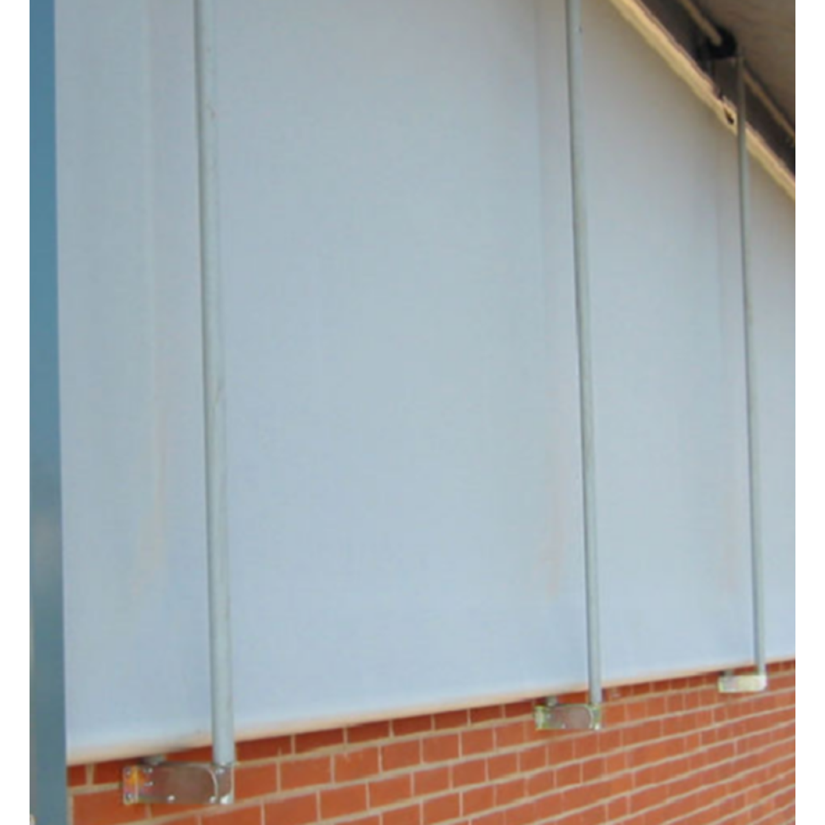 Для безпеки під час високої швидкості вітру спеціально розроблені вітрозахисні труби встановлюються на відстані 2 метрів одна від одної, з висоти максимум 3,5 метра – на відстані максимум 1,5 метра (рекомендована відстань – відстань залежить від висоти отвору). Вітрозахисні труби встановлюються зовні та зсередини завіси та також виконують роль напрямних для завіси. Матеріал: оцинкована сталь з пластиковим покриттям.Переваги та гарантія