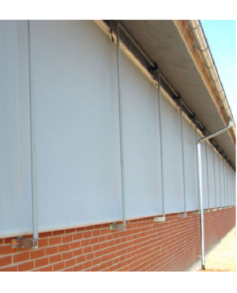 Для безпеки під час високої швидкості вітру спеціально розроблені вітрозахисні труби встановлюються на відстані 2 метрів (рекомендована відстань – відстань залежить від висоти отвору). Вітрозахисні труби встановлюються на зовнішній та внутрішній сторонах завіси та також служать напрямними для завіси. Матеріал: оцинкована сталь з пластиковим покриттям.Переваги та гарантія