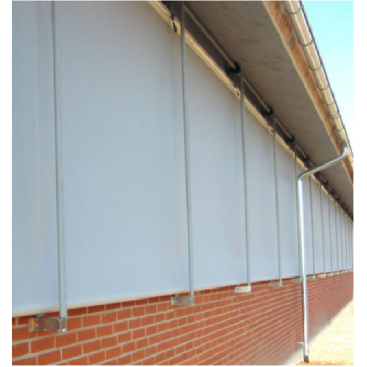 Для безпеки під час високої швидкості вітру спеціально розроблені вітрозахисні труби встановлюються на відстані 2 метрів (рекомендована відстань – відстань залежить від висоти отвору). Вітрозахисні труби встановлюються на зовнішній та внутрішній сторонах завіси та також служать напрямними для завіси. Матеріал: оцинкована сталь з пластиковим покриттям.Переваги та гарантія