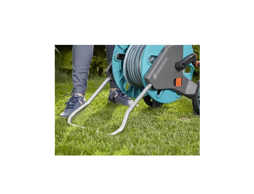 Gardena AguaRoll M - візок для зручного переміщення і зберігання шланга в скрученому вигляді. Візок обладнаний виходами для приєднання шланга, що дозволяє виконувати якісний полив території. Для безпечного переміщення візка зі шлангом спрацьовує пристрій проти протікання води. Шланг легко накручується і розкручується на барабан за допомогою зручної рукоятки. При переміщенні можна закріпити кінець шланга на рукоятці. Візок Gardena AguaRoll M обладнана двома колесами, які дозволяють з легкістю переміщатися по території в потрібне місце. Стійкість забезпечує ніжка підставка, яка запобігає перекидання візки. З візком Gardena AguaRoll M легко переміщати і зберігати шланг довжиною до 60 м, який забезпечить якісний полив на будь-якій відстані.Переваги та гарантія