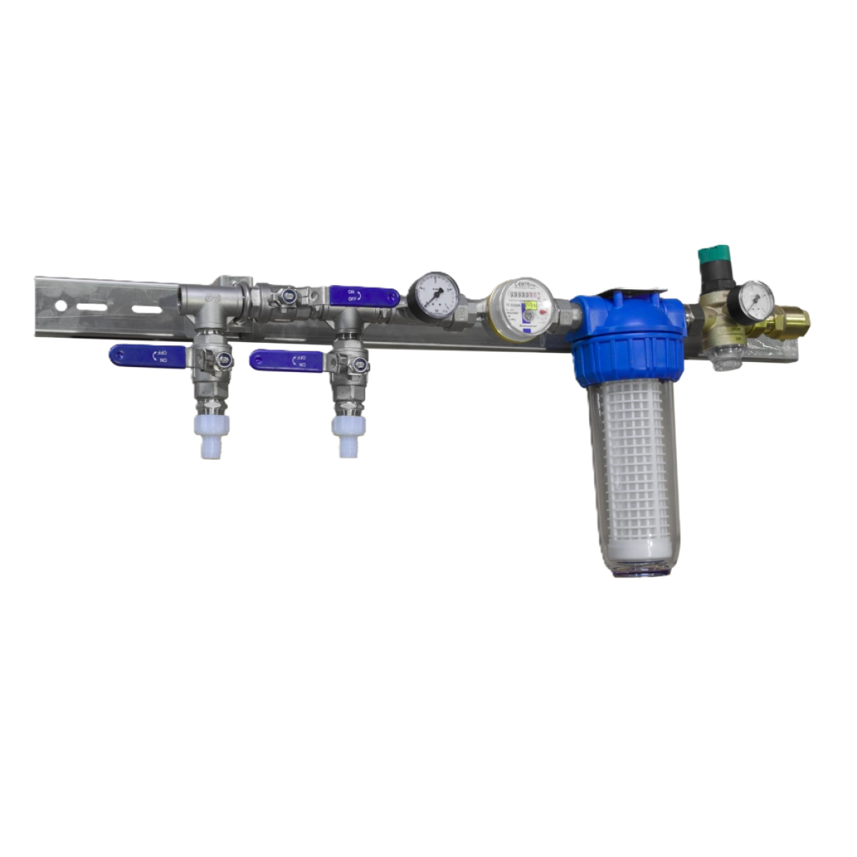 Блок керування водою, зібраний на профіль, включаючи зворотний клапан регулятора тиску, фільтр для води, лічильник води, підключення води з байпасом для медикатора, все в 3/4, ширина 800 ммПереваги та гарантія