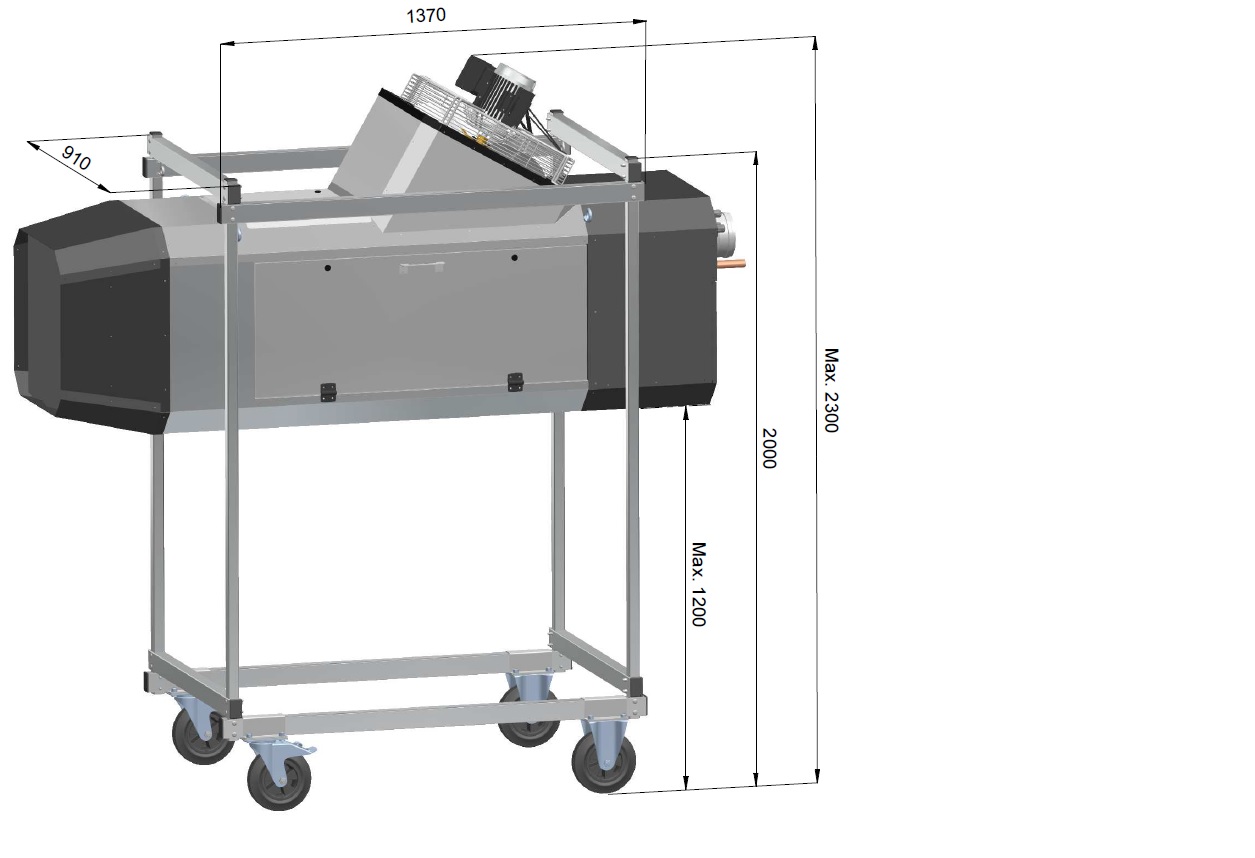 Мобільна підставка Winterwarm GD5000 призначена для зручного розміщення обігрівачів серії DXC. Завдяки цьому рішенню ви можете легко переміщувати обладнання по приміщенню без складного демонтажу. Це особливо зручно для очищення або зміни розташування обігрівача.