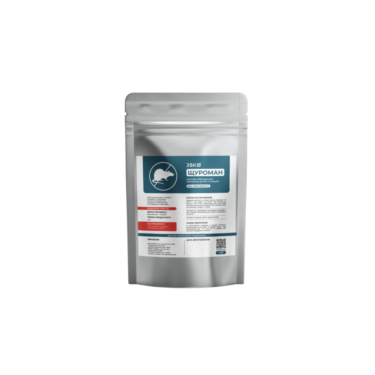ЩУРОМАН Засіб для боротьби з мишами та щурами у побутових, сільськогосподарських, складських приміщеннях та на відкритих територіях. Принаду розкласти в сухих місцях порціями по 30-50 г від щурів і по 10-20 г від мишей на відстані 3-5 м між приманками, де вона буде легкодоступною для гризунів, але недоступною для домашніх тварин і птахів. Періодично перевіряють розкладені принади і, при потребі, поповнюють до повного зникнення гризунів. Загибель гризунів настає через 5-10 діб.Переваги та гарантія
